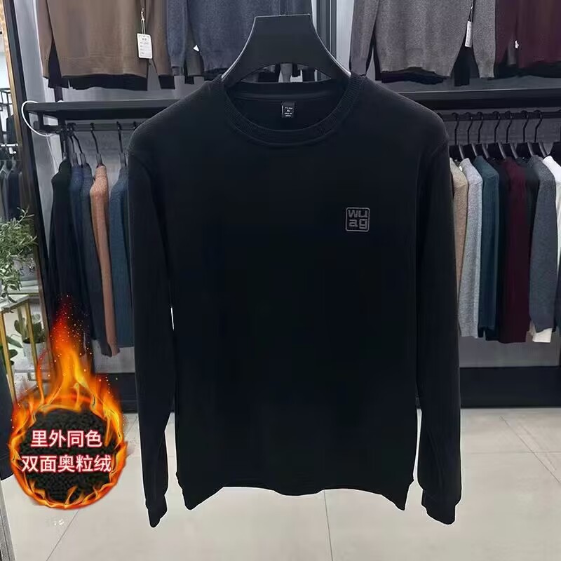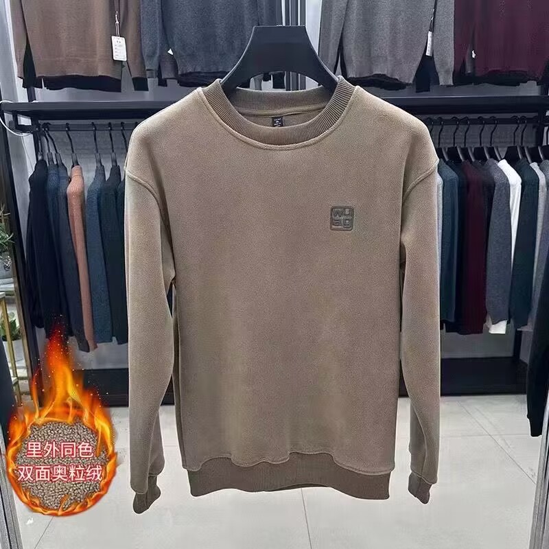 Foreign Trade Cut Label Double-sided Thickened Australian Grain Velvet Autumn And Winter Fleece-lined Top Men's Solid Color Casual Round Neck Fleece Sweat